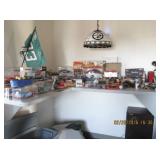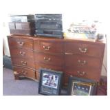 ITEMS INCLUDED IN SALE: Mid Century Modern Full Bedroom Set, (2) Double Door Lighted Curio Cabinets, Executive Desk, Signed Hitchcock Stencil Back Chair, Ethan Allen Early American Hutch, Kent Coffey Gentleman's Chest, Cedar Lined Wardrobe, Tile Top Dinette Set, Sofa Table, Jewelry Armoire, Leather Top Round Duncan Phyfe Accent Table, Ultra Suede Lift Chair, Rocking Chair, Pair High Back Swivel Bar Stools, (2) Charles Wysocki Framed Prints, Emeril Cookware, Fostoria Crystal Bowl, Stemware, (4) Lenox "Windswept" Old Fashioned Tumblers, Clear Glass Lenox "Poppies On Blue" Chip/Dip Set, Vintage Stoneware Mixing Bowl, Vintage Child's Baby Plate, Brassware, 1991-1992 Budweiser Beer Mugs, Nautical/Beach Themed Decorative Items, Costume Jewelry, Lenox Collector Plates, Fenton, Precious Moments Figurines, Wax Sealer w/Soapstone Press, Old Photos, Newspapers & Wedding Memories & Honeymoon Scrapbook, Naval Uniforms, Brass/Wood Ship's Wheel, Men Stuff - Lighters, Watches, Letter Openers, etc., Tobacco Humidor, Steelers Memorabilia, Stetson Hat In Original Box, Many Silk Neck Ties, Foreign Coins, Vintage Lionel Plastic Train Set In Original Box, Vintage Electronic Battleship Game, Die Cast Cars (NASCAR), Wall Mounted Flat Screen Television, Electronics Including Blue Ray Disc Player, Surround Sound Speaker System & Pair Advent Speakers, Records, Japan Old Fashioned Car Shaped Radio, Mickey Mouse Telephone, Portable Sewing Machine, Stackable Washer & Dryer, Tools, Craftsman Tool Chest, Aluminum Extension Ladder, Toro Snow Blower, Lawn Boy Lawnmower, Barbecue, (2) Wrought Iron Firewood Holders, Pair Aluminum Portable Wheel Chair Ramps, '61 Chevy Impala Fender Skirts, (4) Mint Condition Vintage Chevy Hub Caps |