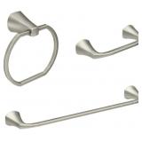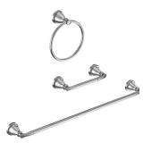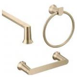 - Set includes 24 in towel bar, toilet paper holder and towel ring