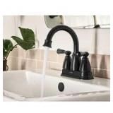 - Matte black double handle bathroom faucet