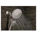 - four-function 6-1/2" diameter spray head handshower