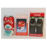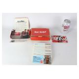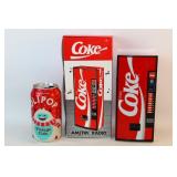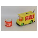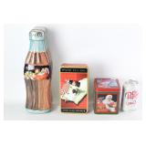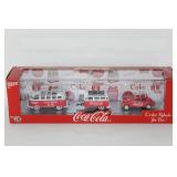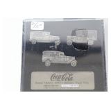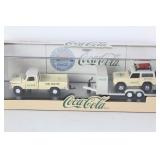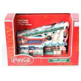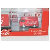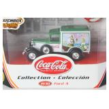 CATALOG TEXT BELOW: 1 - Coca Cola Table Lamp 2 - Set of 6 Johnny Lightening Coca Cola Die Cast 3 - 2 Coca Cola Glass Canisters 4 - Mid-South TCCCC Salutes America Septemberfest 200r Mid-South TCCCC Salutes America Septemberfest 2002 Canister 5 - 4 Assorted Coca Cola Glass Canisters 6 - Festive Coca Cola Party Plasticware 7 - Poolside Safe Coca Cola Party Serving Items 8 - 23 NIP "Tome Coca Cola" Delivery Trucks 9 - Coca Cola Musical Polar Bear Centerpiece/Ornament NEW in box 10 - Assorted Coca Cola Glasses 11 - 1955 Chevy Stepside Pickup Johnny Lightening Die 12 - 3 Olympic Coca COla Toy Trucks/Vans DIe Cast 13 - Matchbox Collectible "Have a Coke" Truck 14 - 5 NEW Coca Cola Toy Vehicles 1988 Ford Mustang GT 1965 Ford Econoline Truck 1957 Chevrolet Sedan Delivery 1979 Chevrolet Scottsdale Die Cast Truck 1966 Chevrolet Corvette 427 15 - Vtg Fisher Price Little People Coca Cola Truck 16 - Coca Cola Santa Clause Bobble Head 17 - Coca Cola "Disco Nights" Juke Box Polar Bear NIB 18 - 1500 Piece Coca Cola Puzzle NEW Sealed 19 - Display Case Full of Coke PIns & Collectibles 20 - Double Sided Coca Cola Store Advertisement 21 - Set of Coca Cola Glass Mugs 22 - Asssorted Coca Cola Collectibles 23 - Die Cast Cars in Coke Flavors WOW NIP 1957 Chevrolet Bel AIr Gasser, Fanta-1973 Chevrolet K5 Blazer, 1959 Chevrolet Fleetside, 1969 Plymouth Barracuda diet Coke, 1941 Willys Coupe Gasser-Sprite, 1955 Dodge La Femme-Cherry Coke 24 - Assorted Coca Cola Die Cast Cars & Trucks NEW 1968 SHelby G.R.500KR, 1972 Chevrolet Camaro Z28, 1976 Chevrolet Scottsdale 4 x 4 Truck, 1970 Ford Mustang Mach 1 351, 1950 Studebaker 2R Truck, 1958 Chevrolet Impala, 25 - Set of Coca Cola Flavors Toy Die Cast WOW NEW 1970 Ford Torino Cobra, 1957 DeSoto Fireflite, 1960 VW Double Cab Truck, 1970 Dodge A100 Panel Van, 1970 Ford F-100 Custom 4 x 4, 1970 Nissan Fairlady Z432, 26 - Coca Cola Serving Set 27 - 2 NEW Coca Cola Puzzles 28 - 2 NEW Sealed Coca Cola Puzzles 29 - Assorted Coca Cola Glasses & Canister 30 - Coca Cola Coasters, Ashtrays and More 31 - The Coca Cola Charm Bracelet with COA 32 - Adorable Coca Cola Bears 33 - Coca Cola Diner Mini Clock New in Case 34 - "Coca Cola Sold Here Ice Cold" Coat Rack 35 - 2 Siku Eurobuilt Die Cast 1/55 scale VW Rabbit Pick-UP and Volkswagon Mini Van. 36 - Lot of 20 Coca Cola T-Shirts (NEW) 37 - Lot of 20 New Coca Cola T-Shirts 38 - Lot of 20 Coca Cola T Shirts NEW 39 - Lot of 20 Assorted Coca Cola T-Shirts 40 - 11 Coca Cola Shirts 41 - Retro Coca Cola T-Shirts 42 - 6 Coca Cola Sports Related Shirts 43 - Coca Cola Die Cast Metal 1/25th Scale Pickup Truck Die Cast Metal 1/25th Scale 44 - Coca Cola Ford Model T Collectible NIB 45 - 1:24 Scale Die Cast Nascar 1 of 1800 46 - Matchbox Collectible Coca Cola Volkswagon Bug 47 - Matchbox Collectibles 1957 GMC Van Coca Cola 48 - 1931 Coca Cola Delivery Truck NIB 49 - 2 Coca Cola Syrup Jugs (Cocaine Removed LABEL) 50 - 2 Coca Cola Tubs 51 - Vintage Coca Cola Blanket Bag 52 - 2000 Piece Coca Cola Puzzle Sealed 53 - Coca Cola 1500 Piece Puzzle Sealed 54 - 2000 Piece Coca Cola Puzzle NEW and Sealed 55 - Vintage "Enjoy Coca Cola" Fountain Top Sign 56 - 4 Piece Racing Set-Coca Cola Die Cast Models 57 - 1963 Volkswagen Type 2 (T1) Pickup 58 - 2 NEW Coca Cola Puzzles in Tins 59 - AMT 1109 Coca Cola Model FB Beaded Fruehauf Van Model Kit 1/25 60 - 4 Piece Set of Coca Cola Mugs 61 - "Enjoy diet Coke" Dry Erase Board 62 - 2 Coca Cola Welcome Signs 63 - "Things go better with Coke" Vintage Clock 64 - Smokey Says; "Prevent Forest Fires" Bear Coca Cola 65 - Retro Coca Cola "Stay Refreshed" Sign 66 - Can You Pick Up on Tuesday April 1st ??? IF not, have your winnings shipped or get someone else to claim your winnings! 67 - Bachman G Kit Coca Cola Train Wooden Box Car 68 - Coca Cola Wall Hanging Wooden Crate Shelf 69 - Coca Cola Checkers Game Board 70 - Coca Cola Santa Claus 71 - Lot of Coca Cola Ornaments 72 - Coca Cola Polar Bear Mechanical Bank Limited Edit 73 - Crystal Coca Cola Pola Bear Family 74 - Coca Cola Musical Collection Soda Fountain 75 - 2 Coca Cola 1000 Piece Puzzles 76 - Coca Cola Carousel Horse & Music Box 77 - 2 Coca Cola Napkin Dispensers 78 - NIB Coca Cola Straw Dispenser & Case of Straws 79 - Assorted Wendy's Cycle On Accessories 80 - 6 Assorted Coca Cola Polar Bear Theme Die Casts 1969 Ford Mustang Funny Car, 1965 Ford Econoline Truck, 1985 Chevrolet Camaro Iroc-Z, 1955 Chevrolet Bel Air Gasser, 1976 GMC Sierra Grande 15 Pick Up Truck, 1988 Ford Mustang GT, 81 - Lot of Assorted Coca Cola Collectibles 82 - Lot of Coca Cola Ornaments 83 - 3 Coca Cola Train Accessories New in Box 84 - 5 Coca Cola Die Cast collectible Cars 1957 Chevrolet Sedan Delivery, 1964 Dodge A100 Panel Van, 1956 Ford F-100 Tow Truck, 1971 Dodge Charger HEMI, 1969 Datsun Bluebird 1600SSS, 85 - 6 Piece Set of Coca Cola Beanies 86 - 5 Packages of Coca Cola Coasters 87 - Coca Cola Mini Clock New in Case 88 - Matchbox Collectibles "Anniversary Year" Truck 89 - Coca Cola A Year in Box Calendar Sets 2004 and 2005 90 - 2 Corgi Die Cast Coca Cola Vans NIP 91 - Nascar Mini-Cars Second Editions 92 - Set of Racing Nascar Coca Cola Drinking Glasses 93 - Assorted Coca Cola Collectibles 94 - 6 Assorted Coca Cola Polar Bear Beanies 95 - 1955 Chevy 5100 Step Side Die Cast Truck NIB 96 - Coca Cola Cookie Plate & Tumbler plus Ornament 97 - Coca Cola Santa Clause Bobble Head 98 - 3 NIB Coca Cola Trim a Tree Ornaments 99 - 1966 Volkswagon Beetle Coca Cola Die Cast NIB 100 - 3 NEW 100 Piece Coca Cola Puzzles 101 - Coca Cola Polar Bear family 102 - Coca Cola on Ice Stein & Santa's Reward Stein 103 - Clear Glass Coca Cola Place Setting 104 - Assorted Coca Cola Christmas Ornaments 105 - 1913 Model T Van Model Kit Coca Cola 106 - Glass Display Shelf for Your Coke Miniatures 107 - Coca Cola Soda Machine MIniature Musical Bank 108 - Crystal Coca Cola Santa Clause Figurine 109 - 2 Coca Cola Music Boxes 110 - Coca Cola Beanie Babies 111 - Coca Cola Stocking Holder 112 - 3 Assorted Coca Cola Toy Vehicles 11