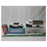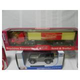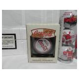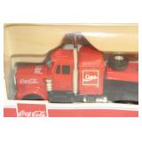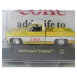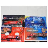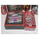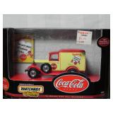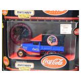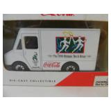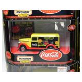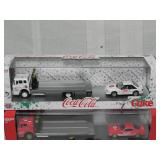 CATALOG TEXT BELOW: 1 - Coca Cola Table Lamp 2 - Set of 6 Johnny Lightening Coca Cola Die Cast 3 - 2 Coca Cola Glass Canisters 4 - Mid-South TCCCC Salutes America Septemberfest 200r Mid-South TCCCC Salutes America Septemberfest 2002 Canister 5 - 4 Assorted Coca Cola Glass Canisters 6 - Festive Coca Cola Party Plasticware 7 - Poolside Safe Coca Cola Party Serving Items 8 - 23 NIP "Tome Coca Cola" Delivery Trucks 9 - Coca Cola Musical Polar Bear Centerpiece/Ornament NEW in box 10 - Assorted Coca Cola Glasses 11 - 1955 Chevy Stepside Pickup Johnny Lightening Die 12 - 3 Olympic Coca COla Toy Trucks/Vans DIe Cast 13 - Matchbox Collectible "Have a Coke" Truck 14 - 5 NEW Coca Cola Toy Vehicles 1988 Ford Mustang GT 1965 Ford Econoline Truck 1957 Chevrolet Sedan Delivery 1979 Chevrolet Scottsdale Die Cast Truck 1966 Chevrolet Corvette 427 15 - Vtg Fisher Price Little People Coca Cola Truck 16 - Coca Cola Santa Clause Bobble Head 17 - Coca Cola "Disco Nights" Juke Box Polar Bear NIB 18 - 1500 Piece Coca Cola Puzzle NEW Sealed 19 - Display Case Full of Coke PIns & Collectibles 20 - Double Sided Coca Cola Store Advertisement 21 - Set of Coca Cola Glass Mugs 22 - Asssorted Coca Cola Collectibles 23 - Die Cast Cars in Coke Flavors WOW NIP 1957 Chevrolet Bel AIr Gasser, Fanta-1973 Chevrolet K5 Blazer, 1959 Chevrolet Fleetside, 1969 Plymouth Barracuda diet Coke, 1941 Willys Coupe Gasser-Sprite, 1955 Dodge La Femme-Cherry Coke 24 - Assorted Coca Cola Die Cast Cars & Trucks NEW 1968 SHelby G.R.500KR, 1972 Chevrolet Camaro Z28, 1976 Chevrolet Scottsdale 4 x 4 Truck, 1970 Ford Mustang Mach 1 351, 1950 Studebaker 2R Truck, 1958 Chevrolet Impala, 25 - Set of Coca Cola Flavors Toy Die Cast WOW NEW 1970 Ford Torino Cobra, 1957 DeSoto Fireflite, 1960 VW Double Cab Truck, 1970 Dodge A100 Panel Van, 1970 Ford F-100 Custom 4 x 4, 1970 Nissan Fairlady Z432, 26 - Coca Cola Serving Set 27 - 2 NEW Coca Cola Puzzles 28 - 2 NEW Sealed Coca Cola Puzzles 29 - Assorted Coca Cola Glasses & Canister 30 - Coca Cola Coasters, Ashtrays and More 31 - The Coca Cola Charm Bracelet with COA 32 - Adorable Coca Cola Bears 33 - Coca Cola Diner Mini Clock New in Case 34 - "Coca Cola Sold Here Ice Cold" Coat Rack 35 - 2 Siku Eurobuilt Die Cast 1/55 scale VW Rabbit Pick-UP and Volkswagon Mini Van. 36 - Lot of 20 Coca Cola T-Shirts (NEW) 37 - Lot of 20 New Coca Cola T-Shirts 38 - Lot of 20 Coca Cola T Shirts NEW 39 - Lot of 20 Assorted Coca Cola T-Shirts 40 - 11 Coca Cola Shirts 41 - Retro Coca Cola T-Shirts 42 - 6 Coca Cola Sports Related Shirts 43 - Coca Cola Die Cast Metal 1/25th Scale Pickup Truck Die Cast Metal 1/25th Scale 44 - Coca Cola Ford Model T Collectible NIB 45 - 1:24 Scale Die Cast Nascar 1 of 1800 46 - Matchbox Collectible Coca Cola Volkswagon Bug 47 - Matchbox Collectibles 1957 GMC Van Coca Cola 48 - 1931 Coca Cola Delivery Truck NIB 49 - 2 Coca Cola Syrup Jugs (Cocaine Removed LABEL) 50 - 2 Coca Cola Tubs 51 - Vintage Coca Cola Blanket Bag 52 - 2000 Piece Coca Cola Puzzle Sealed 53 - Coca Cola 1500 Piece Puzzle Sealed 54 - 2000 Piece Coca Cola Puzzle NEW and Sealed 55 - Vintage "Enjoy Coca Cola" Fountain Top Sign 56 - 4 Piece Racing Set-Coca Cola Die Cast Models 57 - 1963 Volkswagen Type 2 (T1) Pickup 58 - 2 NEW Coca Cola Puzzles in Tins 59 - AMT 1109 Coca Cola Model FB Beaded Fruehauf Van Model Kit 1/25 60 - 4 Piece Set of Coca Cola Mugs 61 - "Enjoy diet Coke" Dry Erase Board 62 - 2 Coca Cola Welcome Signs 63 - "Things go better with Coke" Vintage Clock 64 - Smokey Says; "Prevent Forest Fires" Bear Coca Cola 65 - Retro Coca Cola "Stay Refreshed" Sign 66 - Can You Pick Up on Tuesday April 1st ??? IF not, have your winnings shipped or get someone else to claim your winnings! 67 - Bachman G Kit Coca Cola Train Wooden Box Car 68 - Coca Cola Wall Hanging Wooden Crate Shelf 69 - Coca Cola Checkers Game Board 70 - Coca Cola Santa Claus 71 - Lot of Coca Cola Ornaments 72 - Coca Cola Polar Bear Mechanical Bank Limited Edit 73 - Crystal Coca Cola Pola Bear Family 74 - Coca Cola Musical Collection Soda Fountain 75 - 2 Coca Cola 1000 Piece Puzzles 76 - Coca Cola Carousel Horse & Music Box 77 - 2 Coca Cola Napkin Dispensers 78 - NIB Coca Cola Straw Dispenser & Case of Straws 79 - Assorted Wendy's Cycle On Accessories 80 - 6 Assorted Coca Cola Polar Bear Theme Die Casts 1969 Ford Mustang Funny Car, 1965 Ford Econoline Truck, 1985 Chevrolet Camaro Iroc-Z, 1955 Chevrolet Bel Air Gasser, 1976 GMC Sierra Grande 15 Pick Up Truck, 1988 Ford Mustang GT, 81 - Lot of Assorted Coca Cola Collectibles 82 - Lot of Coca Cola Ornaments 83 - 3 Coca Cola Train Accessories New in Box 84 - 5 Coca Cola Die Cast collectible Cars 1957 Chevrolet Sedan Delivery, 1964 Dodge A100 Panel Van, 1956 Ford F-100 Tow Truck, 1971 Dodge Charger HEMI, 1969 Datsun Bluebird 1600SSS, 85 - 6 Piece Set of Coca Cola Beanies 86 - 5 Packages of Coca Cola Coasters 87 - Coca Cola Mini Clock New in Case 88 - Matchbox Collectibles "Anniversary Year" Truck 89 - Coca Cola A Year in Box Calendar Sets 2004 and 2005 90 - 2 Corgi Die Cast Coca Cola Vans NIP 91 - Nascar Mini-Cars Second Editions 92 - Set of Racing Nascar Coca Cola Drinking Glasses 93 - Assorted Coca Cola Collectibles 94 - 6 Assorted Coca Cola Polar Bear Beanies 95 - 1955 Chevy 5100 Step Side Die Cast Truck NIB 96 - Coca Cola Cookie Plate & Tumbler plus Ornament 97 - Coca Cola Santa Clause Bobble Head 98 - 3 NIB Coca Cola Trim a Tree Ornaments 99 - 1966 Volkswagon Beetle Coca Cola Die Cast NIB 100 - 3 NEW 100 Piece Coca Cola Puzzles 101 - Coca Cola Polar Bear family 102 - Coca Cola on Ice Stein & Santa's Reward Stein 103 - Clear Glass Coca Cola Place Setting 104 - Assorted Coca Cola Christmas Ornaments 105 - 1913 Model T Van Model Kit Coca Cola 106 - Glass Display Shelf for Your Coke Miniatures 107 - Coca Cola Soda Machine MIniature Musical Bank 108 - Crystal Coca Cola Santa Clause Figurine 109 - 2 Coca Cola Music Boxes 110 - Coca Cola Beanie Babies 111 - Coca Cola Stocking Holder 112 - 3 Assorted Coca Cola Toy Vehicles 11