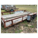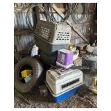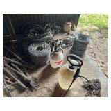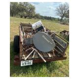 ITEMS OF INTEREST* 27 round bales of hay, Pile of Large corner post, Huge pile of T-Post, 3 Hay rings, Hay feeder rack, Roll of barb wire, Hog wire, large pile of bricks, Old Batteries, steel pipe, Old deep freezers (for storage), wood chairs, 6 folding tables, work benches, shelving, Assorted Tool Boxes, 5th wheel hitch, Scrap travel trailer, Oil and other Mechanic fluids, Cattle Panels, Fuel Barrels, 2 Bicycles, Propane Tanks, Gas Fryer, Large 220 Box Fan, 220 Heater, Pet Taxis, Cattle Molasses Like tank, Galvanized Water Livestock Tub, Ammo Boxes, 9 MM Ammo, 338, 410 and others, 410 Pardner Model Single Shotgun, Pellet Gun, Small Refrigerator, Microwave, Electrical Wiring, Chicken Wire and Pen, Piles of Lumber, Have Heart trap, Wheel Chair, Golf Clubs, Golf Balls, Window AC, Central AC in Box, Refrigerant, wooden Pallets, Old Water Fountain, Old Aluminum Frame Windows, Pile of Corrugated Tin, Water Hoses, and more!
