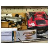 TOOLS* 20-gallon air compressor, Pancake air compressor, 2 ban saws, Drill Press, 20 Ton hydraulic press, Chicago Flux 125 welding machine, Titanium Stick 2245 Welder, cutting torches, tanks & Accessories, Predator Generator, 2 Tail-gator Gas generators, assorted miter/chop saws, Electric Power Washers, Gas Power washer, Gas Water Pump, 2 shop vacs, Stihl & Husqvarna Chain saws, Cordless Pole saws, Poulin Weed Eater, Toro Push Mowers, Chicago Sander, Chicago Table Saw, High lift Jack, floor jack, Stand and Table Vises, Bench Grinder, Assorted Ladders, huge assortment of hand power tools, Mechanic tools, shop hard ware (nuts & bolts, bins, Chains, Boomers, Gas Cans, Garden Tools, Extension Cords, Air Impact tools, New sets of combination wrenches, Screwdrivers, Socket Sets, etc., Parts Washer Tub, 3 sets of trailer ramps, Numerous cordless Drills, 1 Ton Folding Shop Crane, Tower Tool Box, Numerous saw horses, Work Mates, Come-a-longs, Cement Mixer, Battery Chargers, 2 Wheel Dolly, Bolt Cutters, Squares, Cresent Wrenches, Jig Saws, Circular Saws, Fimco 20 Gallon Sprayer, Hand Sprayers, Wheel Barrow, Floor Creeper, Receiver Hitch, Jack Stands, & More!