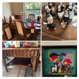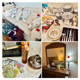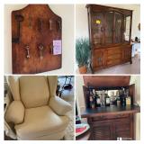 18th Century Scottish Long Case Grandfather Clock, Dining table w/6 chairs,2 leafs & pads, China Cabinet, Bar, Set of Gorham King Edward Sterling, Sofas, Chairs, Art, Lamps, Linen, Records, Rugs, Many Vintage items, Holiday items, Maytag Washer (clear top loader), Whirlpool dryer, Small Frigidaire commercial freezer, Full Kitchen, Garage FULL, Homelite cordless electric mower, Plants, Beach Chairs, Bicycle, Asst. Golf clubs, Large Selection of Picture frames, Nice toiletries~ Sealed Soaps, Lotions, etc, Old Milk Can, Outdoor furniture, Garage has cleaning supplies, Light bulbs in packaging, Sony Sound System, Tables, End/Side Tables, Cookbooks, Nice Pots & Pans, Beautiful Dishes, Bread maker, Sunbeam Stand Mixer w/glass bowl, Silver plated Tea Set, platters, etc, Yard tools, Drink Cart on wheels, Dressers, Ladies Clothes and handbags, Mahjong w/ case, Ovation w/case, Howard Miller Wall Clock, and so much more!!