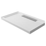 (60) Acrylic Shower Base with Left or Right Drain, Single Threshold, Rectangular Shower Pan, Slip-Resistant Textured Surface,Includes Stainless Steel Chrome Trench Cover (white, 48"×32"×4)