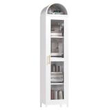 (132) Modern Freestanding Arched Display Cabinet, Arch Bookcase with 1 Glass Door/Shelves, Kitchen Pantry for Dining Room, Home, Office, Kitchen, Assembly Required (White)
