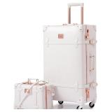 (128) urecity Vintage Luggage Set, 2 Piece Retro Leather Suitcase for Women, Travel Luggage with Spinner Wheels and Beauty Case, Cute Designer Trunk Luggage (Rose White, 20"+12")