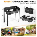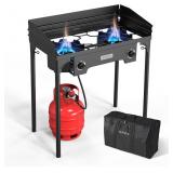 - 150,000 BTU OUTPUT: Supplied with two separate burner, (75,000 BTU for each) you can cook much food in the same. Both burner has individual knob to control heat. Ideal to make family meals like frying fish/chicken, steaming crabs, wok cooking.