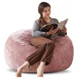 Bean Bag Chair 3Ft, Memory Foam Filled, Large Beanbag Chairs for Adults and Teens, Soft Sofa with Removable Flannel Cover, Round Couch for Living Room Bedroom College Dorm (Pink, 3FT-36×36"×24")