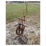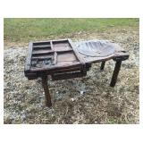 Nice Selections of Antique Furniture, Glassware, and other Collectibles Unusual Child’s Wooden Spoke Wheel wagon Oak Secretary/Bookcase w/ fancy trim Triple Curved Glass Oak China cabinet Fancy High back Brass bed Oak High Boy dresser w/ Mirror Low boy Oak dresser One Drawer wash stand Drop front secretary desk Small Corner cabinet Gate leg Drop Leaf table Hoosier type cabinet Flatwall Cupboard Child’s roll top desk Empire 2 Drawer Drop leaf stand Farrier’s Bench coffee table Pressed back chair Child’s Ladder back rocker Claw and ball organ stool Wrought iron bed Several pieces of rough furniture for parts or restoration Small Unusual Spinning Wheel Small Buttocks Basket Old Farm Bell Victorian Sofa Depression Glass Fenton Glass Opalescnet pattern bowl Fire King dishes Tonka Toys Variety other toys Old Wagon Wheels Corn Sheller
