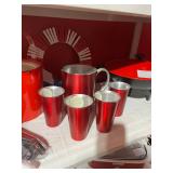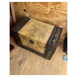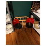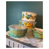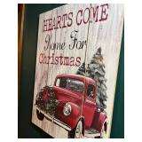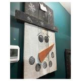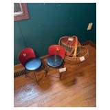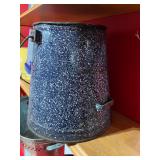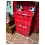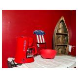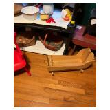 Metal farmhouse trucks for decorating COCA- COLA collection Wooden laundry hamper Wall clocks Metal trays Vintage metal canisters & utensils Cast iron skillet Blue salt glazed mixing bowls