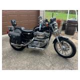 Saucer 2 desks Vintage hutch Assorted hand tools Bud light black light 2003 Harley 883 Sportster 1983 Honda Silverwing 6L500 Touring Car ramps Coolers 28 in fire pit new in box Coolers Bentwood rocker Wagon