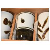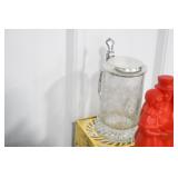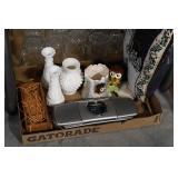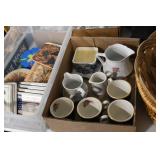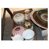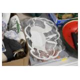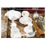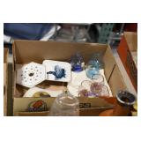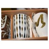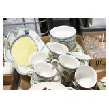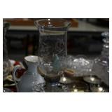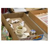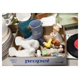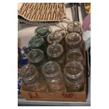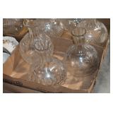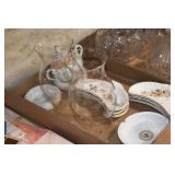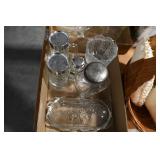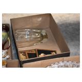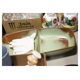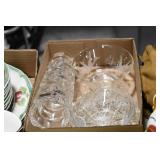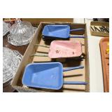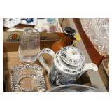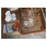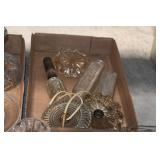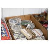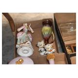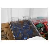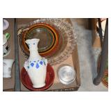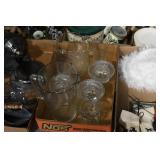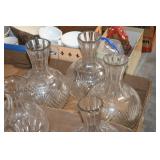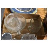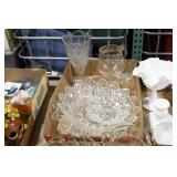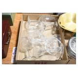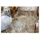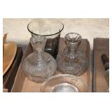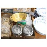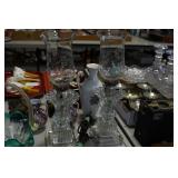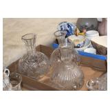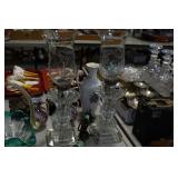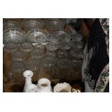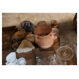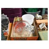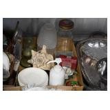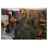 Antique Glassware: Pyrex Mixing Bowls, Pyrex Measuring Cups, Pyrex Food Storage Containers, Salt and Pepper Shakers, Pink Depression, Kobalt Blue Glass, Ruby Glass, Green Glass, Decorative Vases, Art Glass Birds, Glass Figures, Clear Glass, Vaseline Glass, Kitchen Canister Set, Glass Baskets, Copeland Spode England Glass, Uranium Glass, Royal Doulton Dish Set, Various Other Dish Sets, and Other
