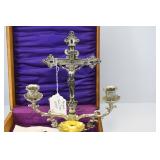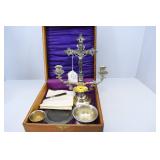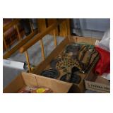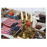 14 Tray Lots of Brass Items: Figures, Plates, Bowls, Vases, Large Amount of Candle Holders, Candle Operas, Trivets, Canisters, Drinking Glasses, and Other