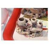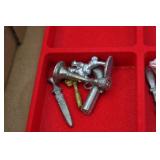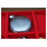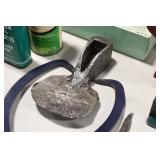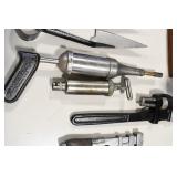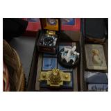 Antiques and Collectibles: 25+ Lots of Gold, Silver, Sterling, Costume, and Other Jewelry, 10+ Very Ornate Wall Hanging and Mantle Clocks, 12 Various Invecta Watches, Invecta Watch Case, Pocket and Wrist Watches, United States Mint and Proof Sets, Carved Wooden Shore Birds and Decoys, Large Amount of Glass Royal Doulton Figurines, “Raine” Collector Shoes and Slippers, German Steins, Pottery Crocks and Jugs, Woodware, Vintage Advertising Items, Cast Trivets, Sad Irons, Copper Kettles, John Deere Pedal Tractor, Vintage Cameras, Bossons Bust Figures, Cats Meow Houses, Carved Ornately Carved Pipes, Butcher Knives, Folding, Pen, and Sheath Knives, Large Amount of Vintage Collectible Tools, Vintage Scales, Victor Record Player, Vintage Records, and Other