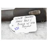 11. WWII German K98 Bayonet w/Matching Numbered Scabbard and Leather Frog – Bayonet and Scabbard are No. 9114