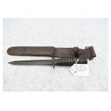 36. M1 Carbine Bayonet Converted to Fighting Knife w/Leather Sheath – Leather Sheath Inscribed “Smitty” On Front and Locations On Back
