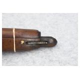 502R. Japanese – Type 14 Nambu – 8mm Nambu Cal. Semi-Auto Pistol – w/4 5/8” Barrel w/Blade Front & Notch Rear Sights – Military Finish – w/Grooved Wooden Grips – w/Detachable Magazine – w/Correct Period Leather Holster, Note: Inner Flap of Holster for Ammo Storage is Only Holding on by a Few Threads, Very Fragile! – Mfg. Dec. 1943 – Serial #4368 (C&R or FFL Required)
