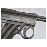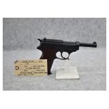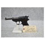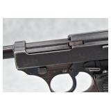 501R. Mauser – Mod. P-38 – 9mm Cal. Semi-Auto Pistol – w/5” Barrel w/Ramp Front & Notch Rear Sights – Blued Finish – w/Factory Slotted Grips – w/P1 Magazine – German Proofed a Total of 5 Times – Gun Appears All Matching Numbered – Mfg./Date Code: byf 43 – Serial #4085d (C&R or FFL Required)
