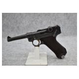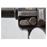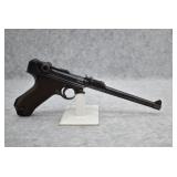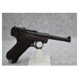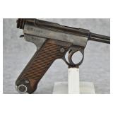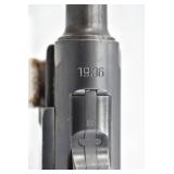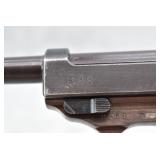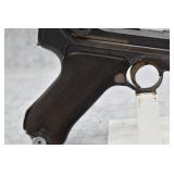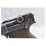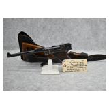 505R. Mauser – Mod. P.08 Luger – 9mm Cal. Semi-Auto Pistol – w/4” Barrel w/Ramp Front & Notch Rear Sights – Blued/Grayed Finish – w/Checkered Wood Grips – w/Non-Matching Number Magazine – Bolt is #50 – German Proofed a Total of 5 Times – w/1937 Dated German Proofed Leather Holster – Mfg. Code: 42, Dated 1936 – Serial #816 on Rest of Gun (C&R or FFL Required)
