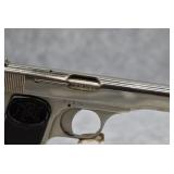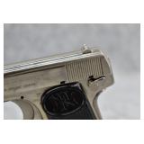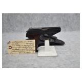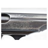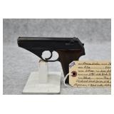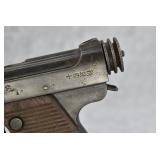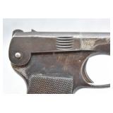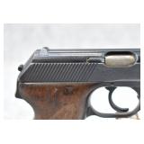 519R. Walther – Mod. PP – 7.65mm (32 ACP) Cal. Semi-Auto Pistol – w/3 ¾” Barrel w/Front & Rear Sights – Blued Finish – w/Factory Checkered Grips – w/“PP” Marked Mag – Slide Marking on Left Side Has Been Buffed Off – Serial Number & German Proofs on Barrel & Right Side of Slide Are Visible & Legible – Serial #299182P (C&R or FFL Required)