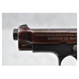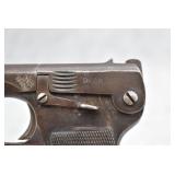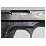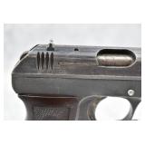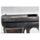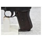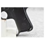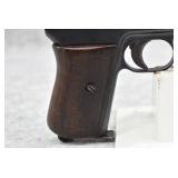 512R. Mauser Werke, Oberndorf – 7.65mm Cal. Semi-Auto Pistol – w/3 3/8” Barrel w/Blade Front & Notch Rear Sights – Blued Finish – w/Checkered Wood Grips – w/2 Detachable Magazines – w/Black Leather Holster – w/2 German Proofs on Trigger Guard; 1 Visible & Other Defaced/Ground – Serial #761296 (C&R or FFL Required)