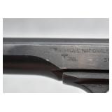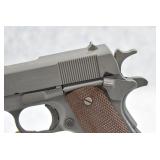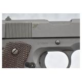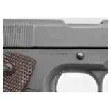 504R. Remington-Rand – Mod. 1911 – US Property Marked – 45 Auto Cal. Semi-Auto Pistol – w/5” “NM” Marked Barrel w/Custom Blade Front & Custom Adj. Rear Sights – Military Finish – w/Checkered Brown Plastic Grips – w/Detachable Magazine – w/Lanyard Ring – w/Custom Non-Factory Trigger (C&R or FFL Required)