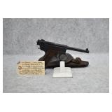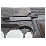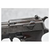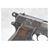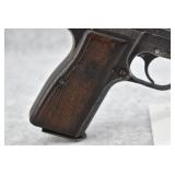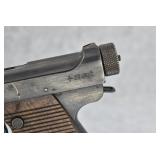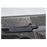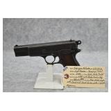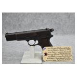 513R. Fabrique Nationale – Mod. Hi Power (Brownings Patent) – 9mm Cal. Semi-Auto Pistol – w/4 7/8” Barrel w/Blade Front & Adj. Rear Notch Sights – Blued Finish – w/Checkered Wood Grips – w/Detachable Magazine – German Proofed a Total of 4 Times; Once on Barrel, Once on Left Side Slide & Twice on Left Side Frame – Serial #67869a, Barrel #342, Frame #67869 & Slide #67787 (C&R or FFL Required)
