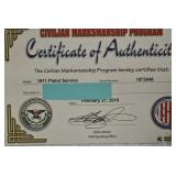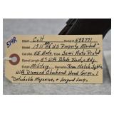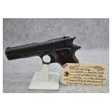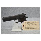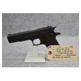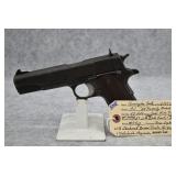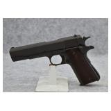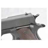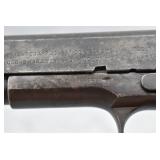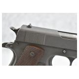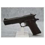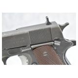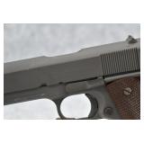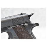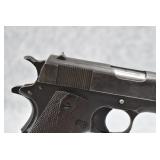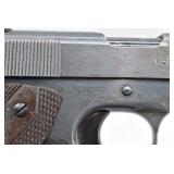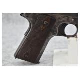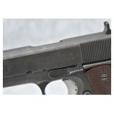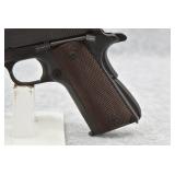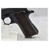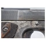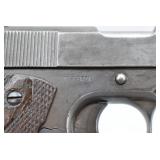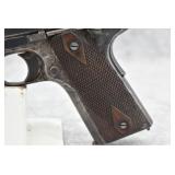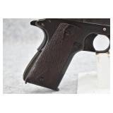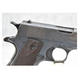 514R. Colt – Mod. 1911 – US Property Marked – 45 Auto Cal. Semi-Auto Pistol – w/5” Barrel w/Blade Front & Adj. Rear Notch Sights – Military Finish – w/Diamond Checkered Wood Grips – w/Detachable Magazine – w/Lanyard Loop – Mfg. 1918 – Serial #498771 (C&R or FFL Required)