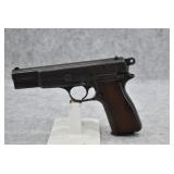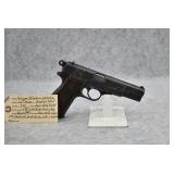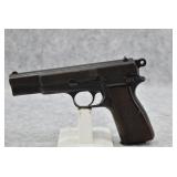 503R. Fabrique Nationale – Mod. High Power (Brownings Patent) – 9mm Cal. Semi-Auto Pistol – w/4 5/8” Barrel w/Blade Front & Adj. Rear Notch Sights – Blued/Gray Finish – w/Checkered Wood Grips – w/Detachable Magazine – Serial #68715a (C&R or FFL Required)