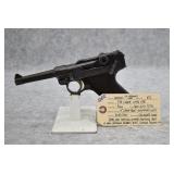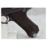 557R. DWM – Mod. 1906 American Eagle Luger – 7.65mm Cal. Semi-Auto Pistol – w/4 ¾” Barrel w/Blade Front & Notch Rear Sights – Blued Finish – w/Checkered Wood Grips – Gun is All Matching Numbers w/Non-Matching Magazine – Serial #35561 – 7,500-8,500 Mfg. (C&R or FFL Required)
