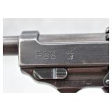 500R. Walther – Mod. P-38 – 9mm Cal. Semi-Auto Pistol – w/5” Barrel w/Front & Rear Sights – Blued/Gray Finish – w/Factory Slotted Grips – w/2 Factory P-38 Marked Magazines – Gun Appears Matching Numbered – German Proofed a Total of 9 Times – w/1940 Dated Leather Holster w/German Proof – Note: Condition Issues on Grips! – Mfg./Date Code: AC 41 – Serial #2537J (C&R or FFL Required)