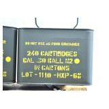 555.        480ct of 30 Ball M2 Ammo in Wooden Crate – Complete w/Lid – (Two 240ct. “Spam Cans”) – Will Not Ship Due to Weight