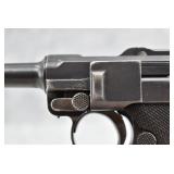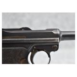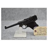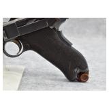 557R.     DWM – Mod. 1906 American Eagle Luger – 7.65mm Cal. Semi-Auto Pistol – w/4 ¾” Barrel w/Blade Front & Notch Rear Sights – Blued Finish – w/Checkered Wood Grips – Gun is All Matching Numbers w/Non-Matching Magazine – Serial #35561 – 7,500-8,500 Mfg. (C&R or FFL Required)