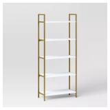 72" Loring 5 Shelf Ladder Bookshelf - Threshold. This 72-Inch 5-Shelf Loring Ladder Bookshelf from Threshold™ makes a stylish and functional addition to your home. The decorative bookcase is designed with a black metal frame, contrasted with brown wood-finish open shelves for a mixed-material look. Featuring five open shelves, it offers ample storage and display space to meet your different placement requirements, from the living room to your home office.