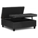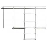 - Open storage in the center section has an adjustable and removable shelf with a weight limit of 15lbs