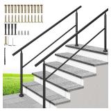 VIVOHOME 2-Pack Hand Rails for Outdoor Steps, Wrought Iron Railing, Black Round Exterior Hand Railing for Porch, Deck, or Indoor Stairs, 6 Step Railing Kit