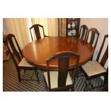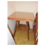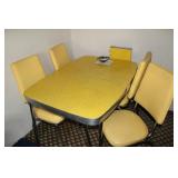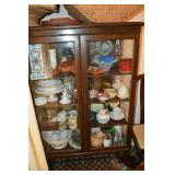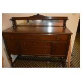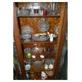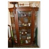 Nice Selection of Antique Furniture 16 pane corner cabinet from Doddridge Co. WV w/ red wash paint Fancy Curved Glass Oak China Cabinet Round Quarter Sawn Oak Dining table and 6 Chairs Square Oak China Cabinet Oak Side board-Small Oak parlour table Nice Yellow formica table and chairs Depression Era kitchen cabinet Oak Side board partially refinished Several pcs of project antique furniture and parts