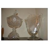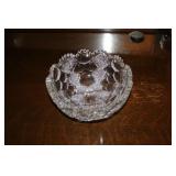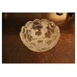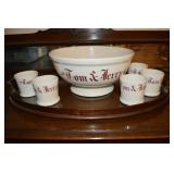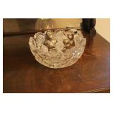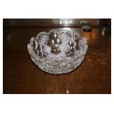 Beautiful Glassware, China, and Quality Figurines Signed Hawkes Bowl Nice Collection of Quality Pattern Glass Pattern Fan vase Lg. Bird pattern covered compote Ruby Flashed Souvenier Glass Wheel cut glassware Painted Cocktail set Johnson Bros Coaching Scenes china Tom and Jerry Punch bowl set Art Glass VAse 4 Hummel Figurines Leprechaun collection Elephant Collection