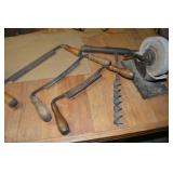 Big Selection of Antique and Modern tools & lawn Care items Draw knives Corn Sheller Several power hand tools Pipe die set Workmate Lots of lawn and garden tools Hand tools of every descriptions Organizer cabinet Shop vac 6/ step ladder Snow Blower
