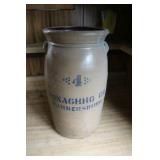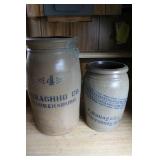 Good Variety of Antiques and Collectible Items Stoneware jugs and Jars Gingerbread Kitchen clock Local history books: poling family, Shenandoah co. VA, Barbour Co., Jacob Nestor Family Wooden Cheese box Collections of small spirits bottles Wash board Old runner sled Blue canning jars Grain Scoop Small cast iron kettle and teapot 1895 fire hydrant novelty painted