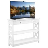 3-layer Media Console: Comprising a large, long drawer, with inner space measuring 86.3 cm L × 22 cm Depth × 7.3 cm H, and two 90.6 cm L × 28 cm W lower shelves, this media console can accommodate electronic equipment like a record player, small sound box, or records, magazines, decorations, etc