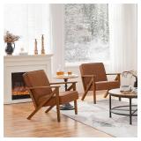 Mid-Century Modern Faux Leather Armchair with Solid Wood Legs, Upholstered Accent Chair for Living Room, Bedroom, Guestroom