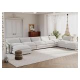 **INCOMPLETE** JUMMICO 198” Modular Oversized Sectional Sofa Couch, Modern Wide Arm, Deep Seat and Reversible Ottoman, Sleeper Sofa Chenille Fabric for Living Room, Apartment (White, Oversized Sofa)