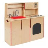 - Kitchen Playset: Practice skills like preparing meals, cleaning dishes, and organizing supplies in the wooden kitchen designed to inspire imagination during pretend to play in a classroom or playroom