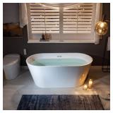 (90) WOODBRIDGE 54"Freestanding White Acylic Soaking Bathtub with White Pillow,Drain and Overflow inBrushed Nickel,BTA1507 -B/N-Drain &O + Pillow