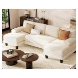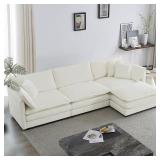 **Incomplete** Modular Sectional Sofa, Comfy Chenille Cloud Couch with Movable Ottoman, L Shaped Sectional Couches for Living Room, Apartment, Office(Beige White)