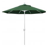 California Umbrella 9' Round Aluminum Market Umbrella, Crank Lift, Push Button Tilt, White Pole, Hunter Green Olefin