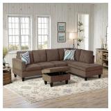 **Incomplete Arms Only** Sectional Couch 3 Pieces Sofa Set with Left Chaise Corduroy L Shaped Cloud Couch for Living Room Furniture Sets with Storage Ottoman, Modular Sofa for Living Room & Apartment, Brown